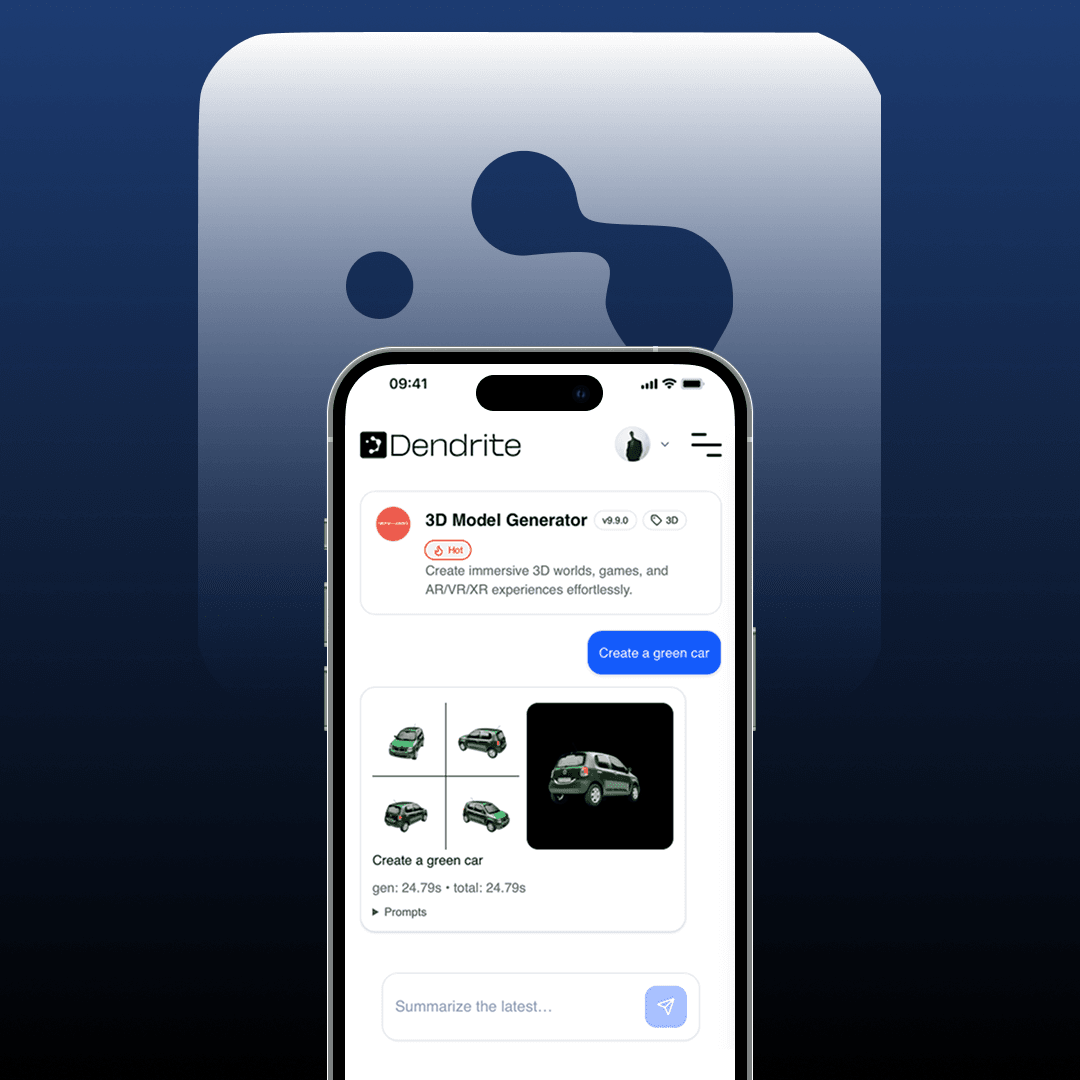 At Dendrite, we enable you to test AI models created in the Bittensor ecosystem. Create a free account now.